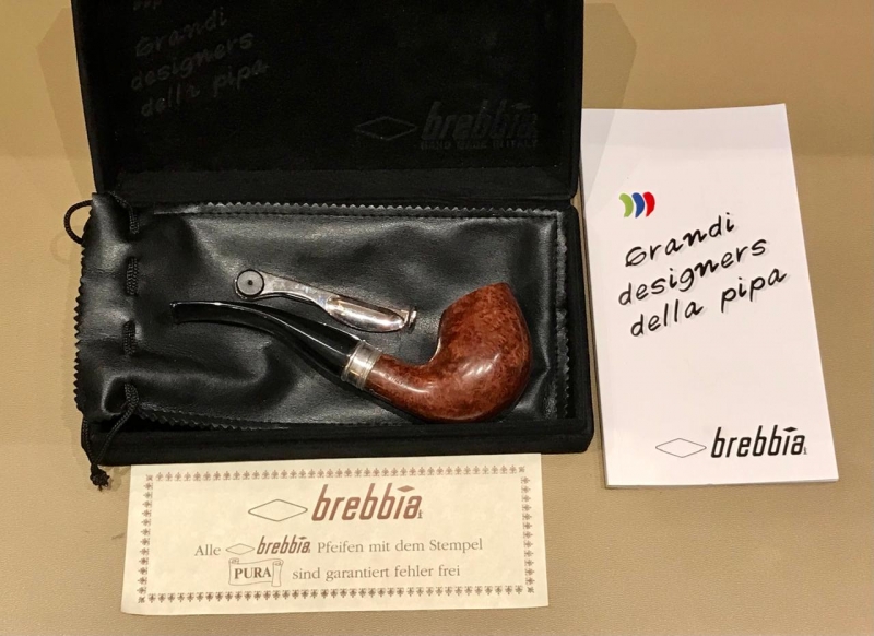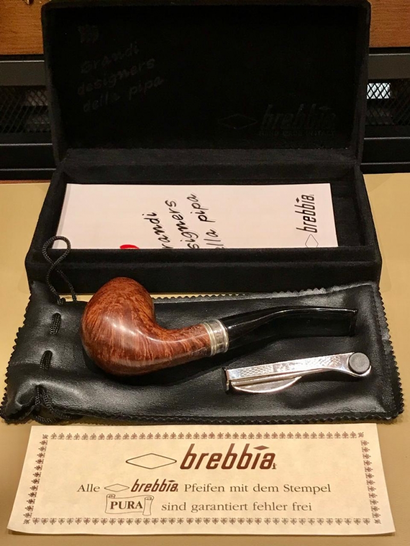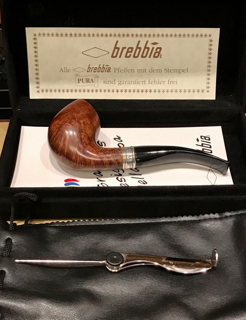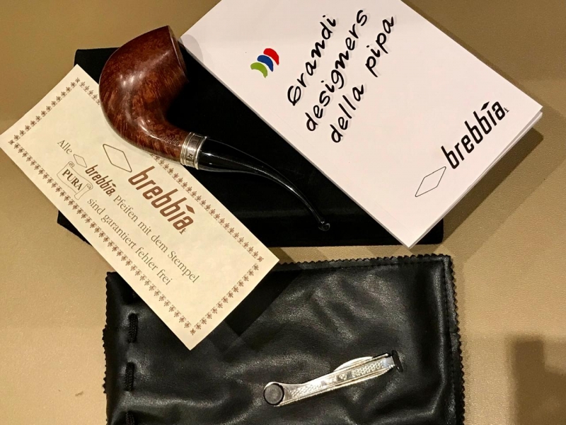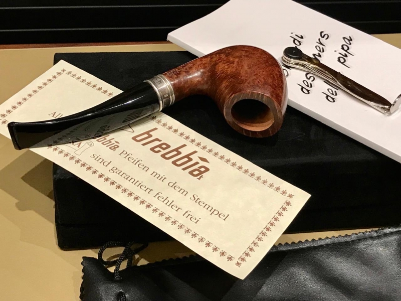 Трубка Brebbia Италия. Бриар, отделка серебро 925. Полный комплект, красивая бархатная коробка, чехол кисет, прибор для чистки, документы.