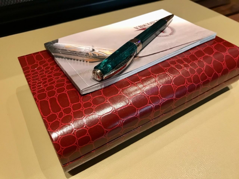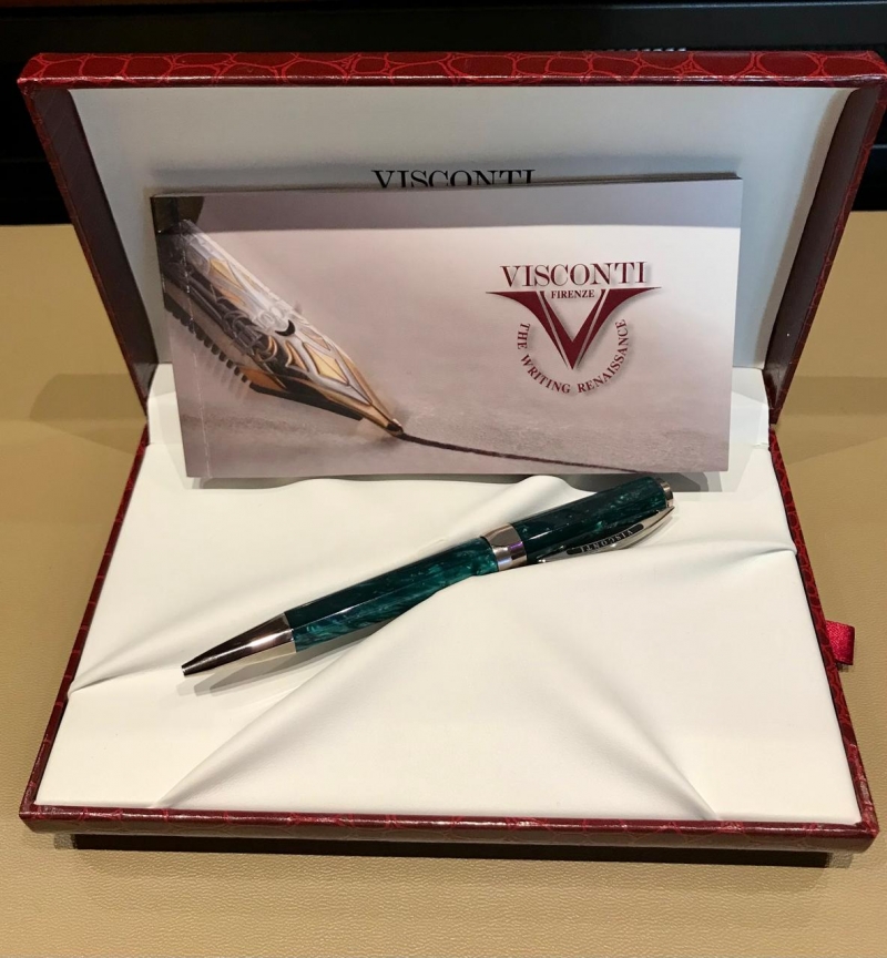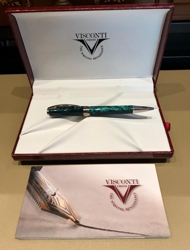 Ручка шариковая Visconti Opera Club Оригинал. Италия. Новая, в коробке. Материал – целлулоид, покрытие палладий. Цвет – изумруд. Неповторимый рисунок разводов. Фирменная коробка красного цвета под «крокодиловую кожу» с белым кож.ложементом.
